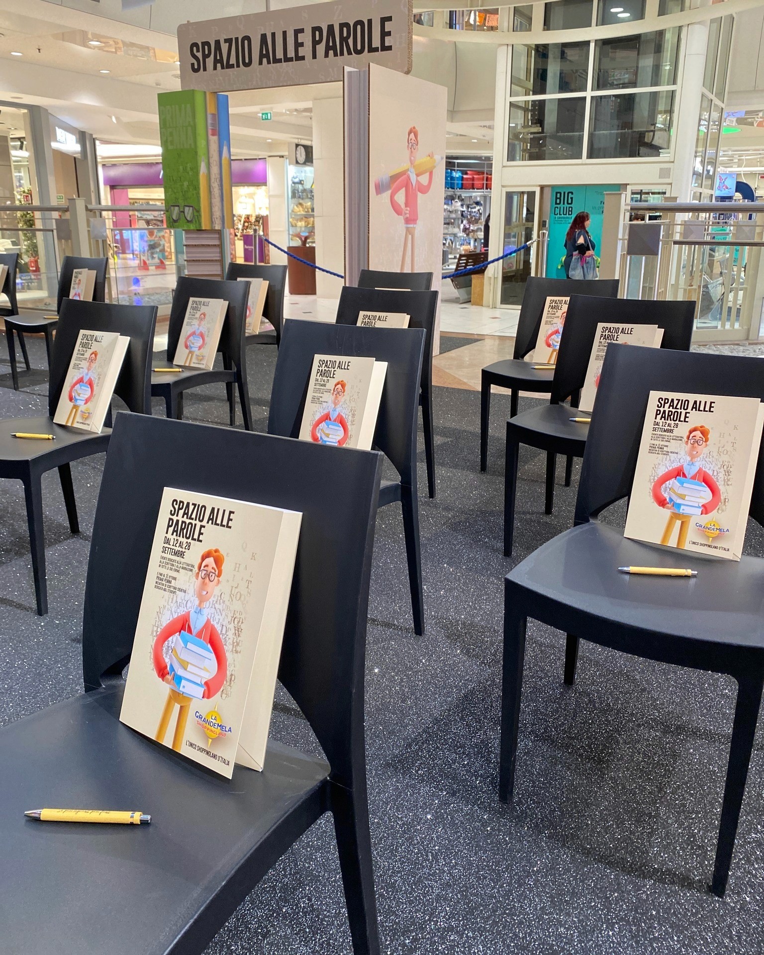 Il Centro Commerciale La Grande Mela è stato trasformato in uno spazio attivo di produzione culturale, grazie ad un allestimento a tema e agli incontri con autori, iniziative dedicate alle scuole, attività di coinvolgimento delle famiglie e la realizzazione del concorso Prima Penna.